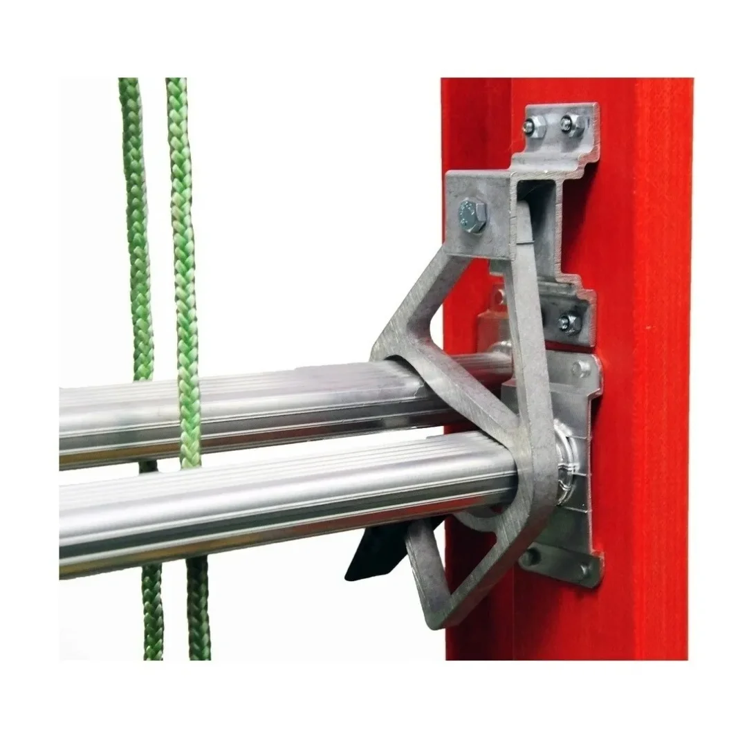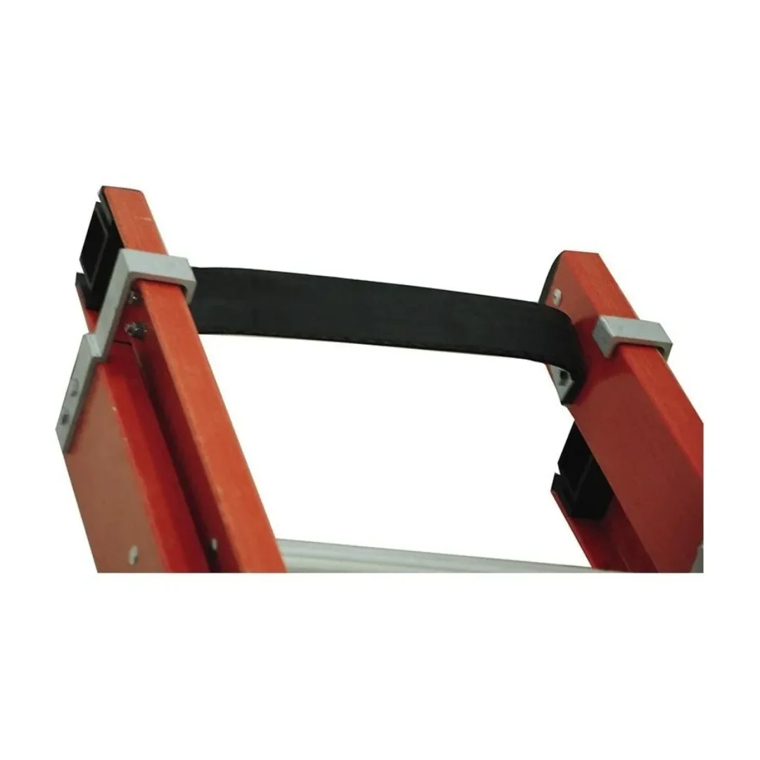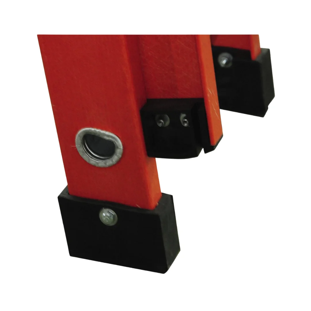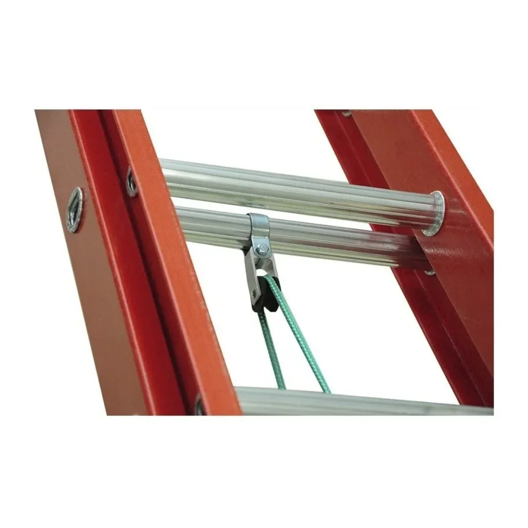 A escada extensível vazada é composta por alumínio e fibra de vidro, combinando leveza e durabilidade. Ela possui duas partes, uma fixa e outra móvel, içada por corda e travada por catraca, permitindo ajuste de altura conforme necessidade. Segura, resistente e fabricada dentro das normas ABNT/NBR e ANSI.