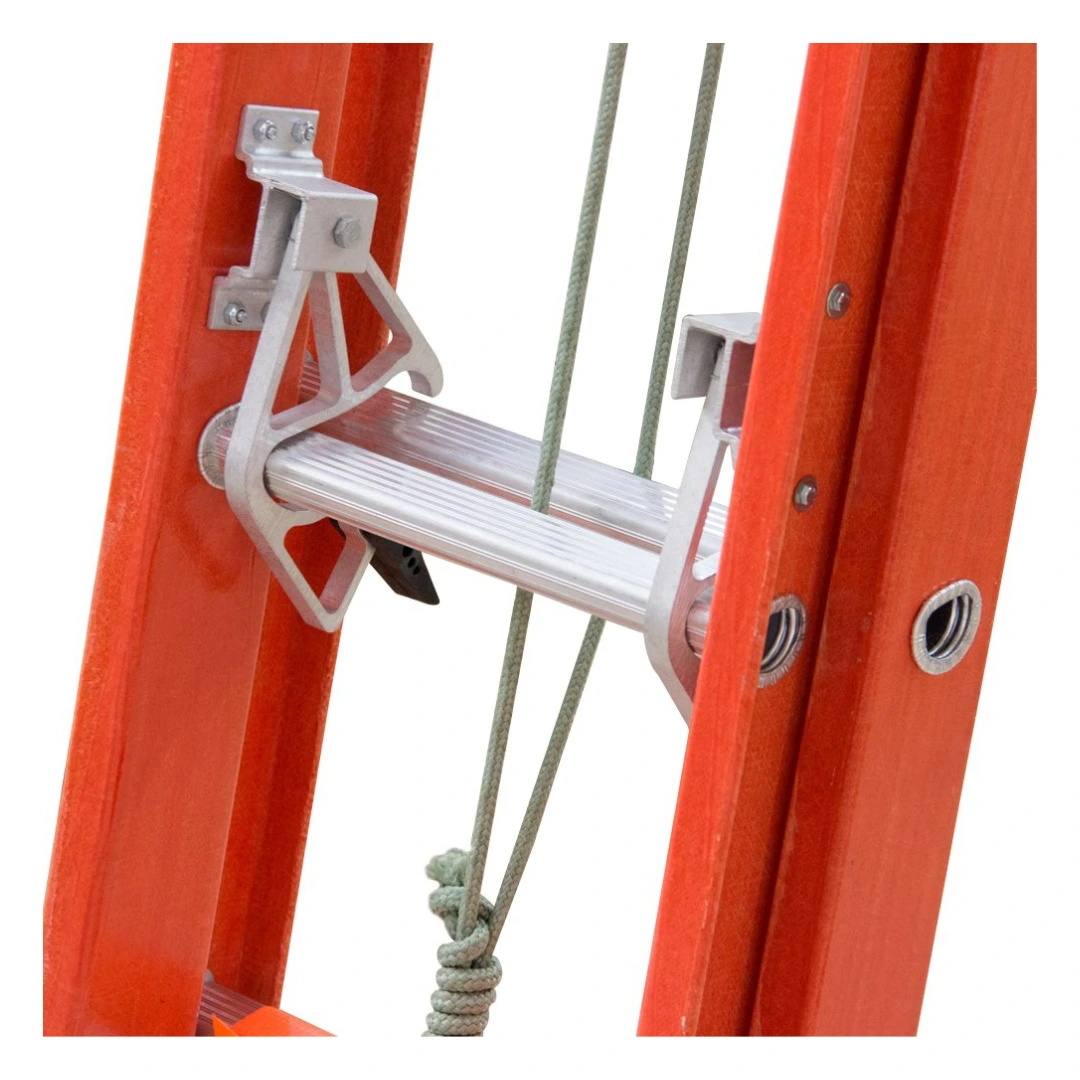 Escada extensiva em fibra, padrão das empresas de telefonia e eletricidade, ideal para trabalhos com segurança em altura. Não conduz eletricidade, não enferruja e oferece alta resistência à corrosão. Robusta, prática e equipada com corda e roldana para ajuste de altura. Perfeita como equipamento para locação na construção civil e manutenção.