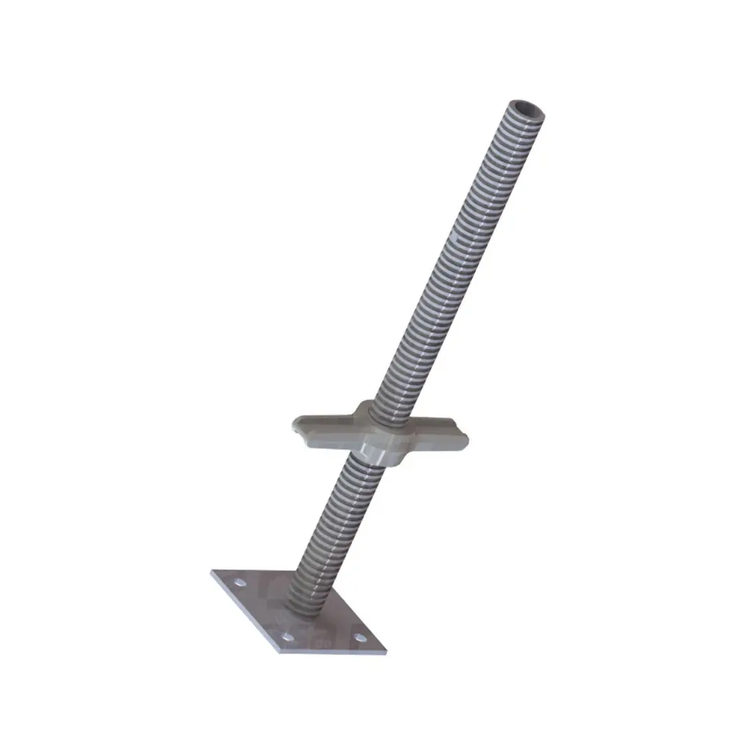 A Sapata Regulável é um acessório fundamental para proporcionar firmeza e estabilidade à base do andaime, especialmente em terrenos irregulares.